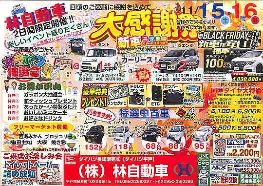 平戸の皆様に「林自動車に任せておけば全部大丈夫」と思っていただけるカーショップを目指して、日々サービスを改善・進化させております。